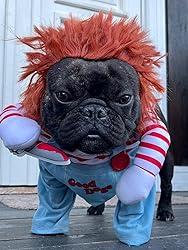 Chucky French Bulldog Costume is the perfect mash-up of cute and creepy, turning your pup into the star of any Halloween party or the most memorable trick-or-treater on the block.