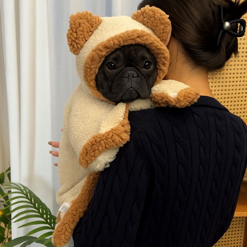 - Adorable bear-hooded French Bulldog blanket for maximum cuteness.