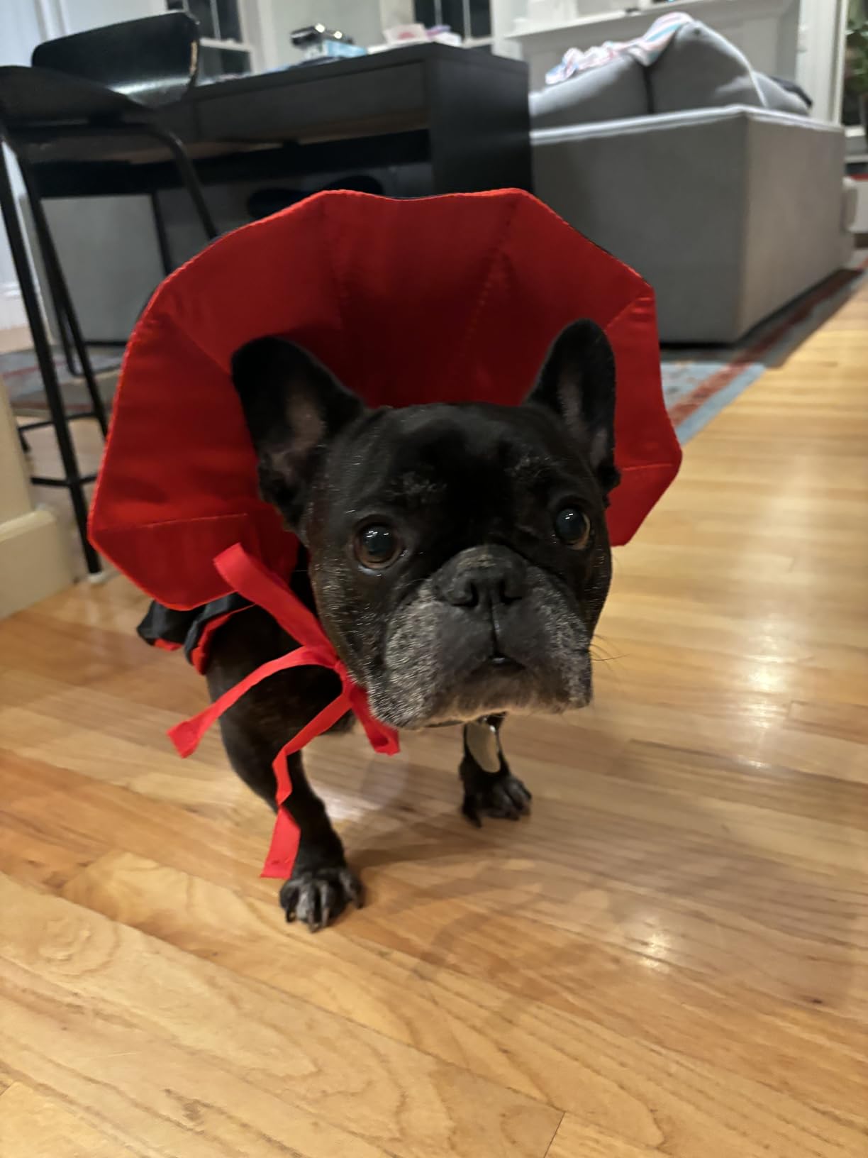 When it comes to French Bulldog Halloween costumes, this Dracula-inspired outfit is a must-have. It combines humor, charm, and spooky style in a way that makes your pup unforgettable. The dramatic collar frames your Frenchieโs face perfectly, while the flowing cape adds just the right amount of vampire flair.