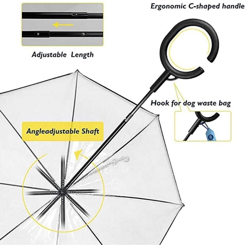 The built-in 13-inch metal leash attaches directly to your dogโs Frenchie harness or Frenchie collar, so you donโt need to purchase extra accessories. With its ergonomic C-handle, you can walk comfortably while keeping your dog shielded. The angle-adjustable shaft and multi-angle rotation mean your Frenchie gets full coverage no matter how windy or rainy it gets.