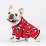 With their short coats and stocky bodies, Frenchies feel the cold more than most breeds. This cardigan adds the warmth they need for chilly winter walks and holiday outings. Crafted from stretchy knit fabric, it fits snugly while allowing your pup to move freely. Choose between bold red or deep green, both decorated with festive teddy bears, to match your dogโs personality or your holiday color scheme.