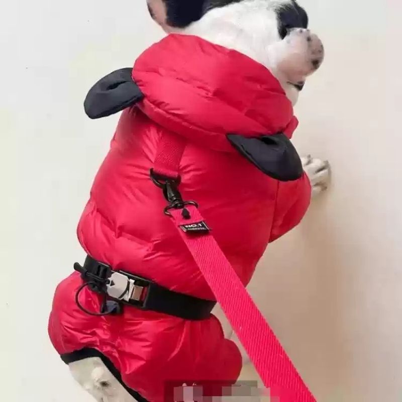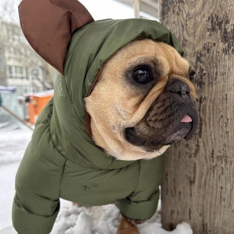 The Frenchie Arctic Jumpsuit is a full-body winter outfit. It’s engineered specifically for the unique anatomy and cold-weather needs of French Bulldogs. With their short coat, wide chest, compact build, and sensitivity to low temperatures, Frenchies require more than a standard dog jacket—they need complete protection.