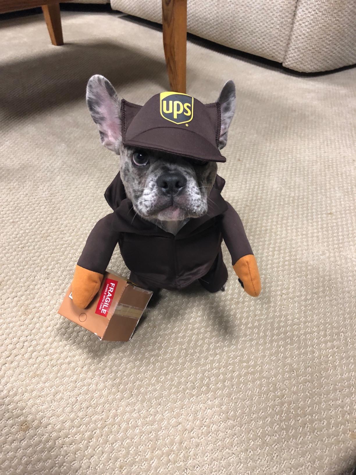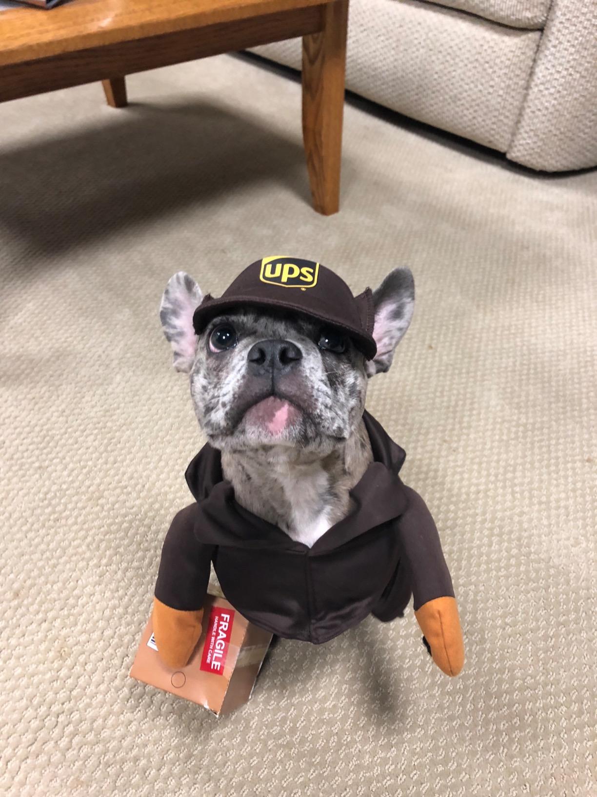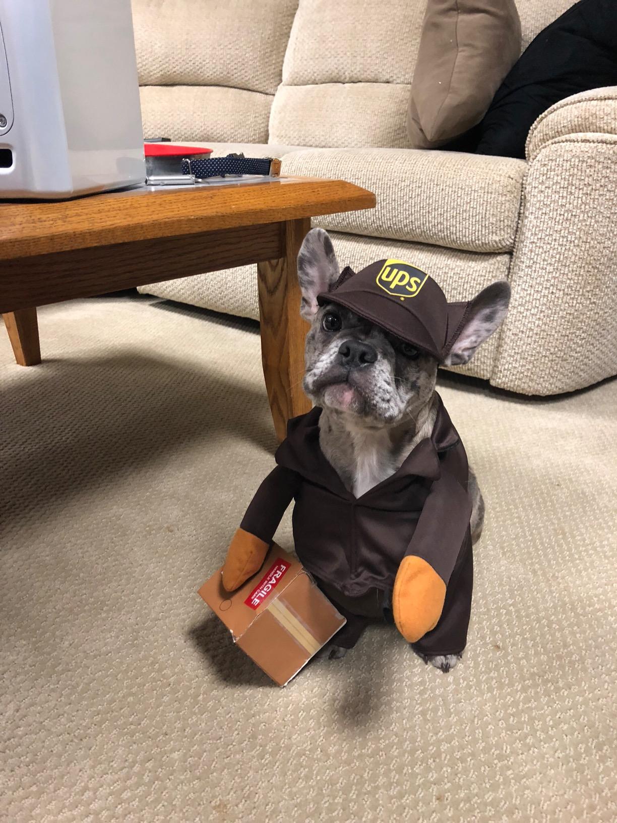 Special delivery of cuteness! The UPS French Bulldog Costume turns your pup into the most adorable little postman, ready to deliver smiles wherever they go.